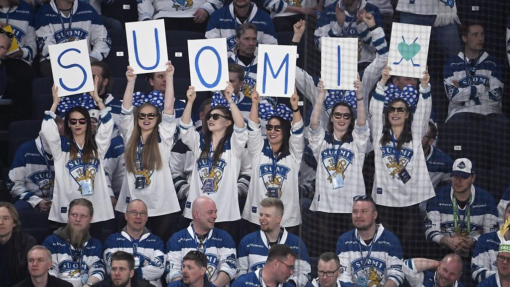MM-kisaväki tunnustaa sinivalkoista väriä kiekkokatsomoissa. Myyjän näkökulmasta yksi tuote on ylitse muiden.