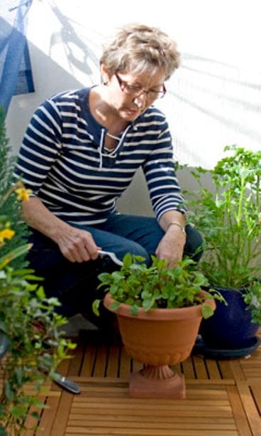 – Usein parvekkeet ovat vain rojuisia varastoja. Jos ei jaksa hoitaa kasveja, niin parvekkeestahan saa muovikukillakin viihtyisän!