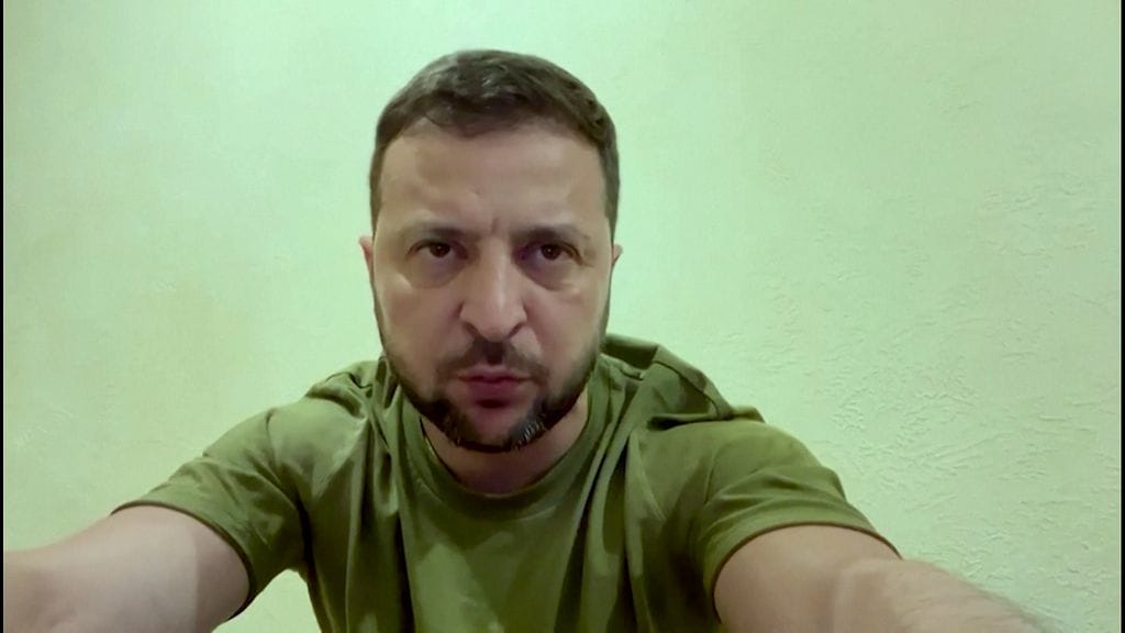 Ennen sunnuntaiaamun Kiovan räjähdyksiä pitämässä puheessaan Zelenskyi vakuuttaa, etteivät ukrainalaiset aio taipua Venäjän paineen alla.
