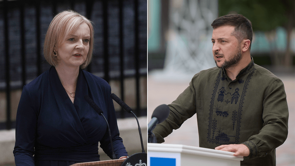 Zelenskyi kertoi Twitterissä kiittäneensä Trussia Britannian jatkuvasta sotilaallisesta ja taloudellisesta tuesta.