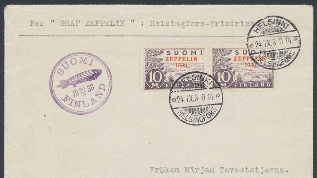 Zeppelin-postimerkkiharvinaisuus on myyty tänään Helsingissä huutokaupassa 15 700 eurolla, kertoo Hellman-huutokauppakamari.