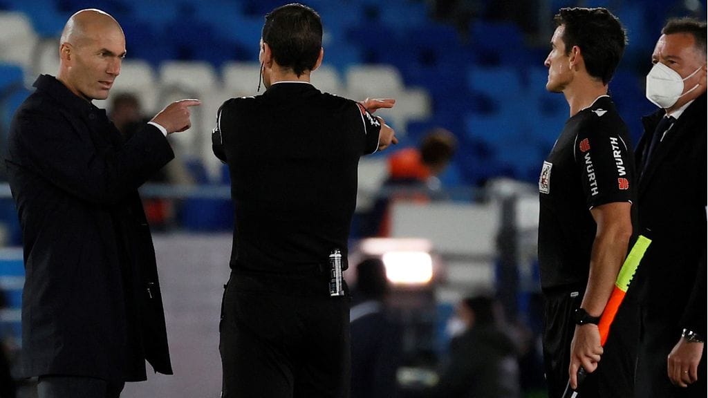 Madridin valmentaja Zidane oli ymmällään lukemiin 2–2 päättyneen ottelun jälkeen. Hän kävi tiukkasanaisen keskustelun tuomari Juan Martinezin kanssa.