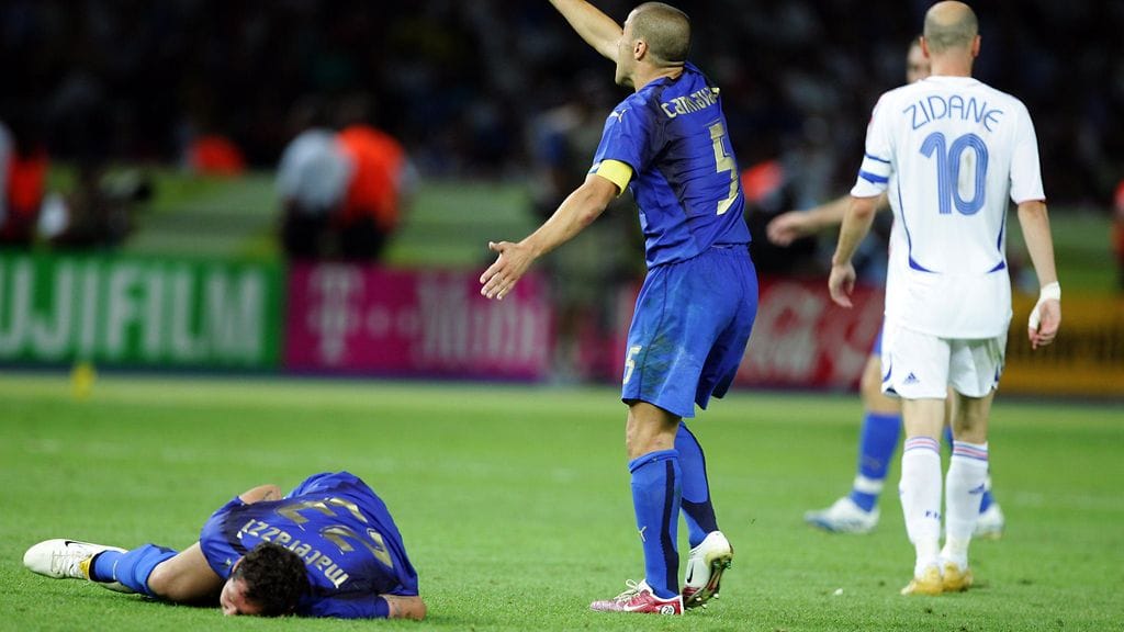 Materazzi ja Zidane ottivat rajusti yhteen MM-finaalin jatkoajalla. Kaksikon raju sanasota päättyi siihen, kun Zidane pukkasi päällään Materazzia rintaan. Zidanen ottelu ja ura päättyi punaiseen korttiin.