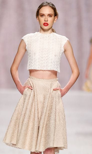 Sveitsi tunnetaan klassisen tyylin maana, mikä näkyi myös catwalkilla: kevät-kesä 2014 -mallistoissa oli paljon perinteisiä kesävärejä valkoista ja beigeä. Lavalla nähtiin lisäksi liukuvärjäyksiä, pitsiä sekä hauskoja, mahtipontisia hiuskoristeita.
