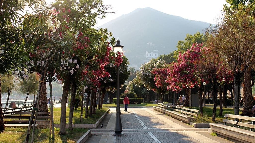 SALERNO. Kesäloma reissu jatkui Napolista pitkin Amalfin rannikkoa. Seuraava etappi oli Salerno, joka Napolin superhektisen ilmapiirin ja metelin jälkeen tuntui mukavalta hermolevolta. 140 000 asukkaan kaupunki tuntui yllättävänkin rauhalliselta. Salernossa ei erityisempiä nähtävyyksiä ole ja päällimmäisenä mieleen jäivätkin jylhät vuoret, viihtyisä rantapromenadi ja varsin tavanomainen shoppailukävelykatu. Koska turismi ei näyttele kaupungissa pääosaa, on hintataso maltillinen. BB-majapaikkamme Suite 39 olikin majoituksen puolesta napakymppi. Tyylikäs, muutaman huoneen kompleksi, jonka huoneet olivat isompia ja hienompia kuin perustason suomalaiset hotellihuoneet. Aamiaisen sai valita itse listalta ja se tuotiin huoneeseen tuoreena ja italialaiseen aamiaistasoon nähden hyvin laadukkaana. Henkilökunta oli reissun ystävällisintä.