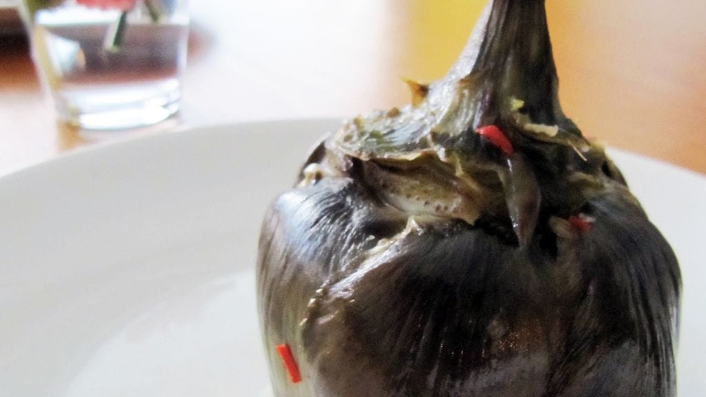 Artisokka-trilogian toisessa osassa olisi tarjolla suosituin italialainen tapa kokata tätä kevätherkkua, täytettynä, carciofi ripieni. Ensimmäisessä osassa kokattiin artisokkaa juutalaiseen tapaan ja lopuksi tomaattista artisokka-kanapataa.