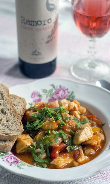 En liiemmin pidä suomalaisesta, maitoon tehdystä kalakeitosta. Sen sijaan rakastan monen muunlaisia mereneläväkeittoja, joista yksi tuli taas repertuaariin. Höysteenä baskilaisittain paprikaa ja tomaattia.