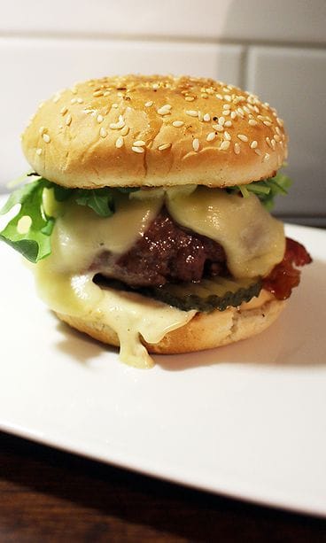 Ihanan runsas ja rasvainen, mutta samalla viehättävä burgeri, joka saa pehmeytensä brie-juustosta ja syvyytensä Worcestershire-majoneesista.