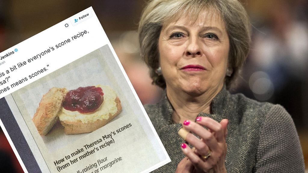 – Theresa May tekee skonsseja noin vähällä margariinimäärällä? Ei ihme, että hän näyttää niin hemmetin surkealta! kirjoittaa Grumpy Girdle -nimimerkkiä käyttävä twiittaaja.