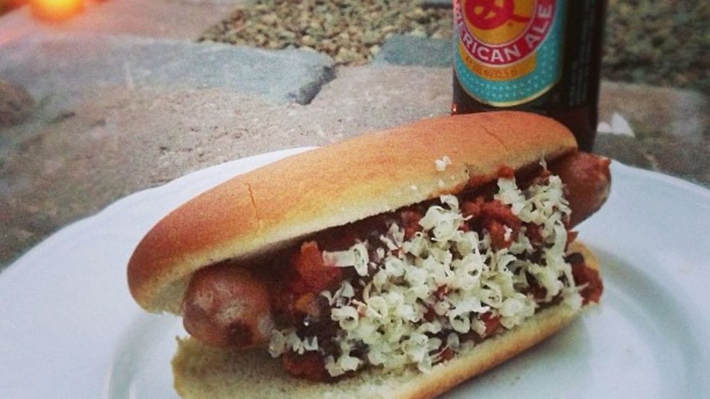 Päätin aloittaa klassikosta. Harva safka on niin tunnettu globaalisti kuin New Yorkin katukärryjen chilidog. En ole vielä päässyt paikan päälle sellaista maistamaan, joten hain netistä lukuisia reseptejä ja yritin löytää niistä homman jujua. Tein ohjeista kombon, jonka aavistelin osuvan ytimeen. Jep. Vastaavanlaisia hodareita ei taida Suomesta löytää, vaikka valmistus on hyvin yksinkertaista. Koska tarkoitus oli päästä nimenomaan helpolla (enkä osaa vielä käyttää kunnolla mökin uunia), käytimme valmissämpylöitä. Leivotaan itse seuraavalla kerralla kotikeittiössä. Makkaraksi valikoitui paria makua ohuita raakamakkaroita. Näitä täytyy saada lisää!