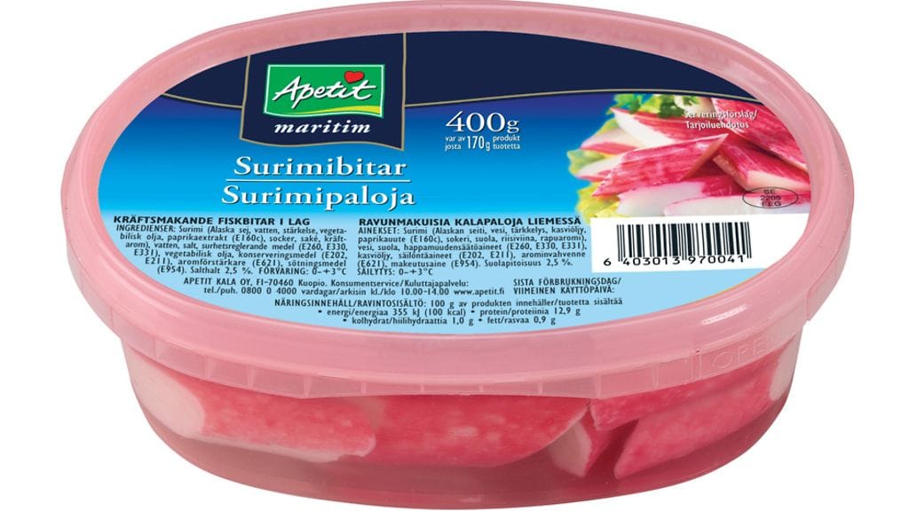 Apetit Kala Oy ilmoittaa, että markkinoilta vedetään pois tuote Surimipaloja 400g/170 g, koska sen ainesosaluettelosta puuttuu maininta kananmunasta ja vehnätärkkelyksestä. Tuote voi aiheuttaa allergisen reaktion kananmunalle tai vehnälle allergisille henkilöille.