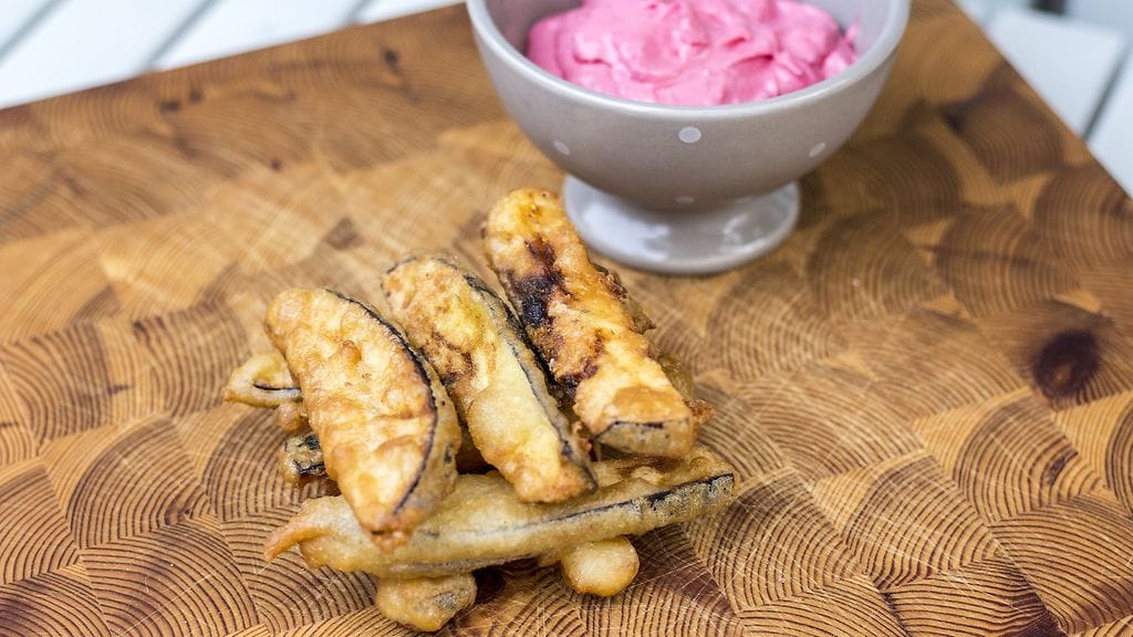 Ruoassa yksi parhaita seikkoja on yllättyä positiivisesti ja puskista. Sellainen tunne tuli toukokuussa Madridissa Más al Sur -tapasbaarissa. Ronskin oloinen paikka tarjoili yllättävältä kuulostavaa komboa fritatuista munakoisoista vadelma-aiolin kanssa. Sitä ei voinut jättää väliin. En törmännyt tapasbaareissa erityisemmin luoviin ratkaisuihin, mutta tämä oli sitä hauskalla tavalla. Halusin ehdottomasti kokeilla sitä myös kotona. Juuri nyt oli oiva hetki testata ruokaa, koska kotimaisen munakoison sesonki on päällä ja vadelmiakin löytyy vielä omista puskista. Ei siinä, tämä on loistava tapas tuoda häivähdys kesää keskelle talveakin.