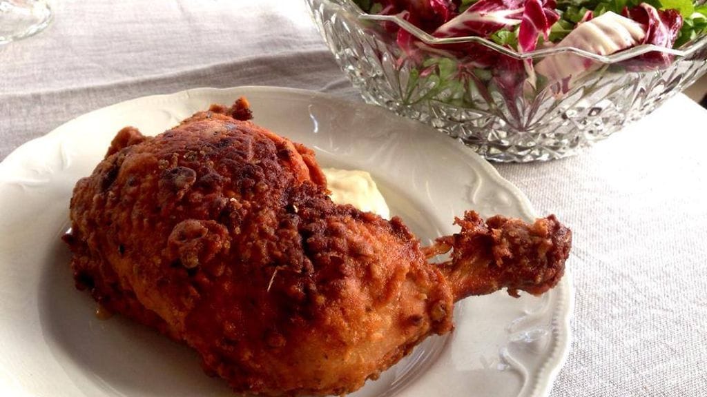 Maailman suurista pikaruokaketjuista pidän KFC:tä kauheimpana. En voi ymmärtää, miksi ihmiset tykkäävät sen safkoista. Läpeensä rasvaa ja suolaa ja muuten varsin mautonta. Friteerauksen irvikuva. Siksipä halusin kokeilla, miltä itse tehty jenkkien etelävaltioiden epävirallinen kansallisruoka, frittikana, maistuu. Löysin jälleen hyvältä kuulostavan reseptin Jamie Oliverin Amerikka-kirjasta. Aiemmin sieltä tuli löydettyä loistavat uuniribsit.