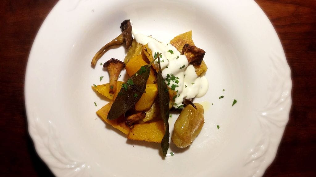 Gnocchit kurpitsan, sienten ja salvian kera