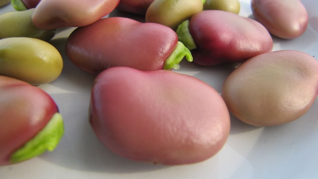 Istutin tänä vuonna ensimmäistä kertaa härkäpapuja. Kuvittelin niiden kasvavan hirmu korkeiksi ja kiertelevän tikun ympärille. Ne pääsivät kuitenkin vaeltelemaan pitkin kasvimaata ja muotoutuivat varsin haastavan mallisiksi. Lopussa kiitos kuitenkin seisoi ja pääsin korjaamaan puolet sadosta alkuruokaan. Resepti on tuoreille härkäpavuille, joita on varsin vaikeaa löytää kaupasta, mutta toimii varmasti myös kuivatuilla pavuilla. Mittana toimi muutenkin oma koura. Ei ole niin tarkkaa. Tulisen Harissan määrä kannattaa mitoittaa oman maun mukaan.