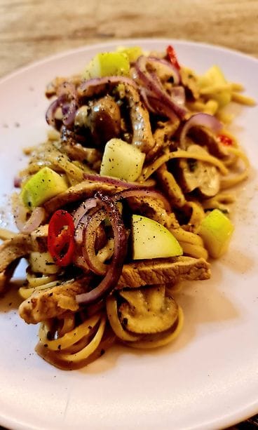Katso resepti: Harri Syrjäsen pippurinen possu-omenapasta