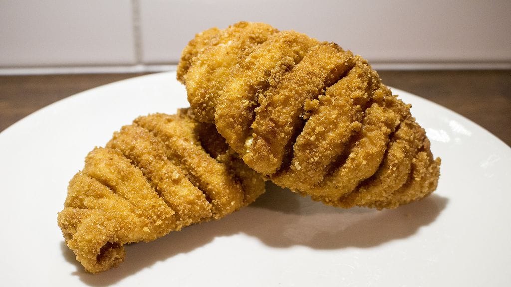 Facebookin nopeat ja lyhyet kokkausvideot tarjoilevat tämän tästä upeita ideoita. Hasselbackan perunat kuuluvat suosikkeihini perunaruoista ja ihastuin ensisekunnilla nähdessäni haitarileikkuutekniikkaa sovellettavan frittikanaan. Broilerifilee on liian paksu sellaisenaan uppopaistettavaksi, joten tavallisesti nuijin sen ohkaiseksi esim. parmesaanikanaa tehdessäni. Kun fileeseen leikataan syvät viillot, liha kypsyy tasaisesti kauttaaltaan. Ja on hauskan näköinen.