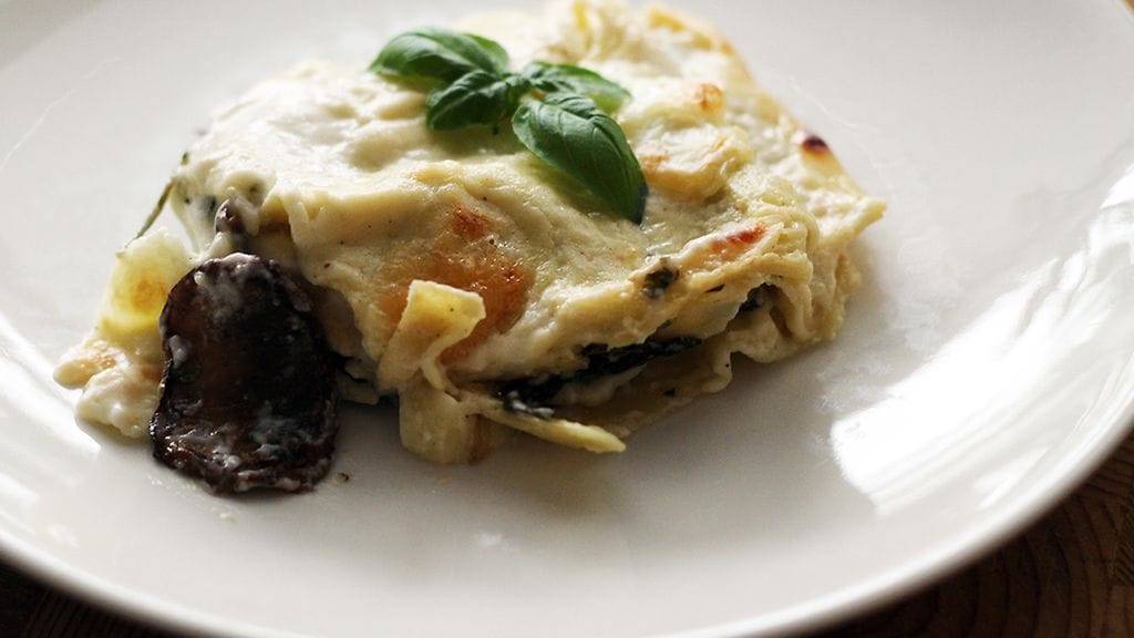 Lasagne on määriteltävistä ruokalajeista lempiruokaani. Sitä on väännetty melkoisesti myös blogin puolella, tsekkaa vaikka nämä seitsemän lasagnereseptiä. Äitienpäivänä kaupat olivat kiinni ja illalliseksi piti käyttää kaapista löytyvää matskua. Grillattaviksi tarkoitetut herkkusienet huusivat päästä suuhun, joten eikun kirjoja selaamaan. Alex Niemisen ja Riikka Sukulan Vege!-kirja pursuaa tuhteja kasvisruokia, joissa ei ole maitotuotteita säästelty. Herkkusienilasagnen ohje tuli kuin tilauksesta. Vielä kun pakkasesta löytyi viimeiset viime kesän itsekasvatetut pinaatit höysteeksi.