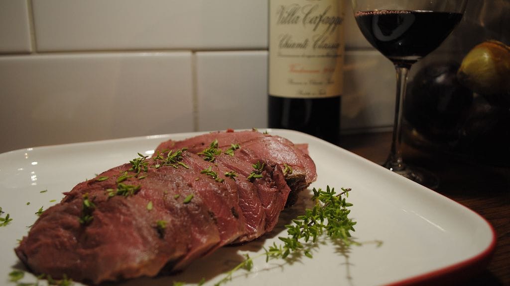 Hirvenpaisti on monikäyttöisyydessään parhaita tietämiäni raaka-aineita. Olemme kolmisen kertaa tehneet siitä routapaistin, jossa valmistus aloitetaan lihan ollessa jäässä. Lopputulos on mehukas, kauniin punertava ja maukas.