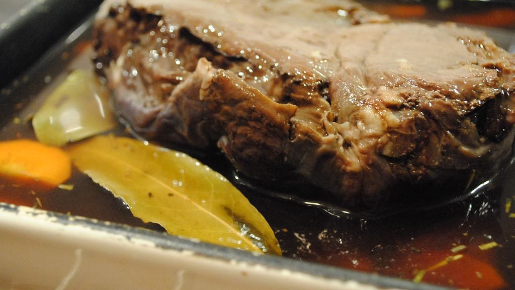 Idea on paistaa paistia miedolla lämmöllä yön yli ja vasta sen jälkeen marinoida se. Ruoka on hyvin helppo ja tekemisen puolesta äärimmäisen nopea. Illalla liha uuniin. Kiehauta marinadi ja anna jäähtyä aamuun. Ota liha aamulla pois uunista ja laita marinadiin. Päivällisaikana valmis. Kuin itsestään.
