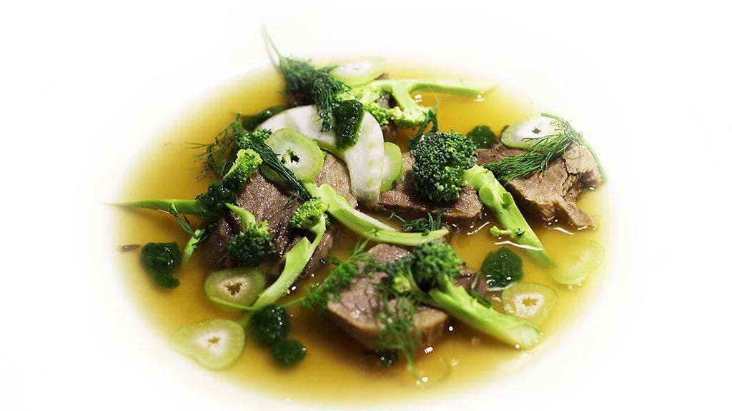 Hirvestyskauden hienostuneen krouvi annos syntyy hirvenkielestä, joka kylpee tilli-fenkoliliemessä ja kruunataan tilliöljyllä ja parsakaalin kukinnoilla. Kirjassa on käytetty karitsankieltä, mutta veikkaanpa, että hirvi on vieläkin parempaa.