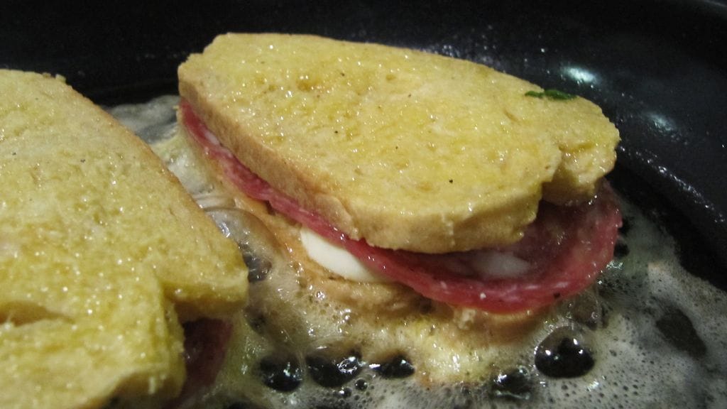 Paistetut ja täytetyt leivät neljälle välipalaksi 8 ohutta viipaletta päivän vanhaa, vaaleaa ja rapeakuorista leipää