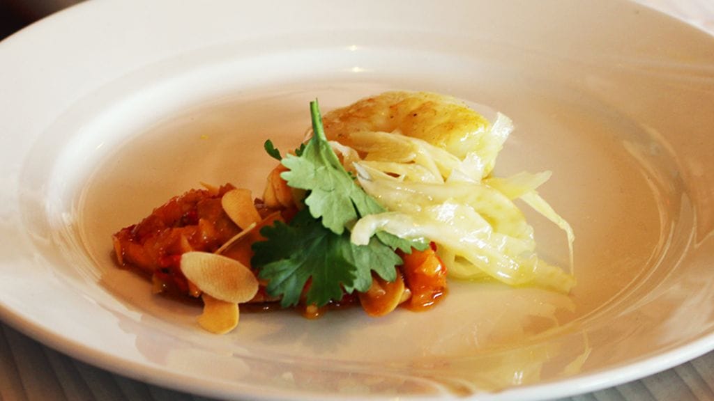 ANNOKSET Chef Santeri: Ravunpyrstöjä kahdella tavalla: gambas al ajillo kevyesti bbq-savustettuna sekä romesco-tyylistä grillattua rapusalaattia ja fenkolia.