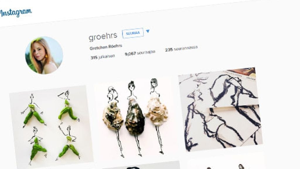 Ruoalla ei saisi leikkiä, mutta San Franciscossa asusteleva Gretchen Röers ei tottele. Muotikuvittaja piirtää luonnoksia ja sulauttaa kuvaan sitten oikeaa ruokaa saaden luonnosten naiset näyttämään siltä kuin he olisivat pukeutuneet esimerkiksi banaaninkuoriin tai artisokkaan. Katso itse!