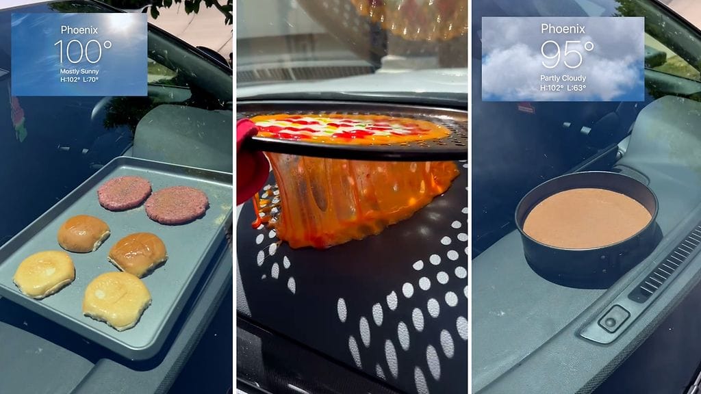 Arizonalaismies paistaa erilaisia asioita autossaan huippukuumista lämpötiloista tunnetussa osavaltiossaan.