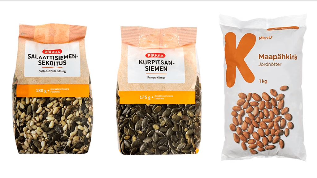 Takaisinvedot koskevat seuraavia tuotteita: Pirkka-salaattisiemensekoitus 180 g (EAN-koodi: 6410405127341, parasta ennen -päiväys: 29.03.2025), Pirkka-kurpitsansiemen 175 g (EAN-koodi: 6410405127327, parasta ennen -päiväys: 23.04.2025) sekä K-Menu maapähkinä 1 kg (EAN-koodi: 6410405134905, parasta ennen -päiväys: 14.04.2025).