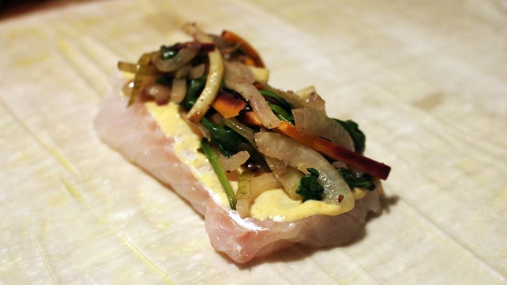 Rakastan filotaikinaa, mutta sitä tulee tehtyä aivan liian harvoin. Tässä hauska tapa kätkeä kala ja lisuke yhteisen kuoren alle. Kylkeen salaattia ja mielenkiintoinen annos on valmis. Melko simppeli ruoka, joka toimii niin arkeen kuin juhlaan.