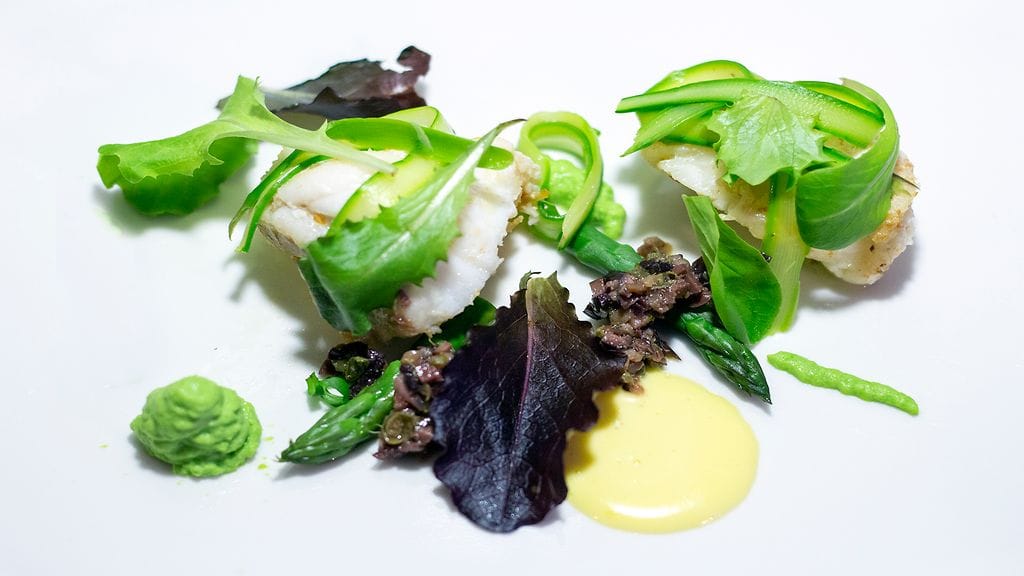 Tässä moniulotteisen tyylikäs kala-annos, jossa on mukana muutama elementti tavallista enemmän, mutta osaset ovat helppo tehdä ja ne voi valmistella vaikka edellisenä päivänä. Sitten vain kala nopsaan paistoon ja komponentit lautaselle. Tein alkuperäistä reseptiä helpommaksi.