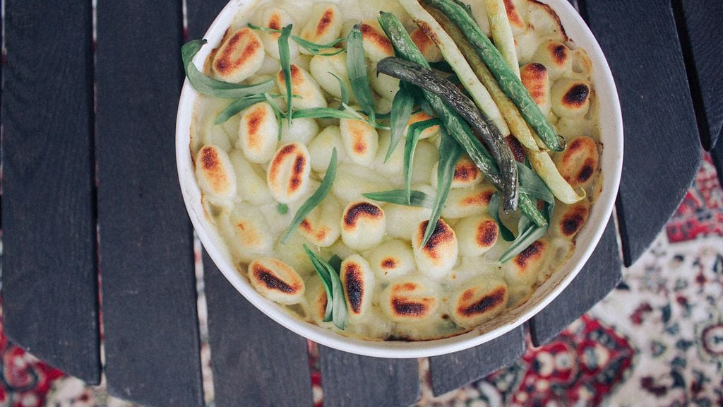 Kalapiiras valmistuu helposti niin, että kypsennetään kala ensin maidossa herneiden kera, tehdään sitten sinapilla ja rakuunalla maustettu maitokastike, sekoitetaan ainesosat yhteen ja peitetään gnoccheilla ja paahdetaan niihin grillivastusten alla rapea pinta.