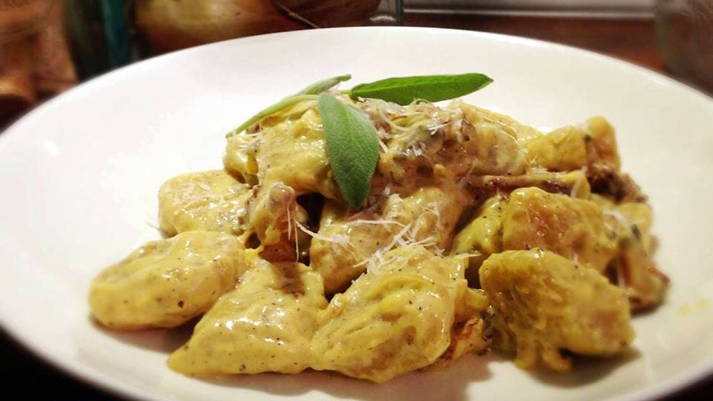 Koska puutarhasta noukittu kurpitsa tarjosi ruokaa useammalle päivälle, oli käyttötapoja mietittävä ahkerasti. Lopputulemana saimme aikaan lasagnen, hirmu kasan gnoccheja sekä salaattia (vaimon blogiin). Gnocchien ainekset ovat pitkälti samat kuin lasagnessa, mutta muoto täysin erilainen. Tuhtia, sydämellä tehtyä sesonkiruokaa. Ja kaiken lisäksi kasvisruokaa.