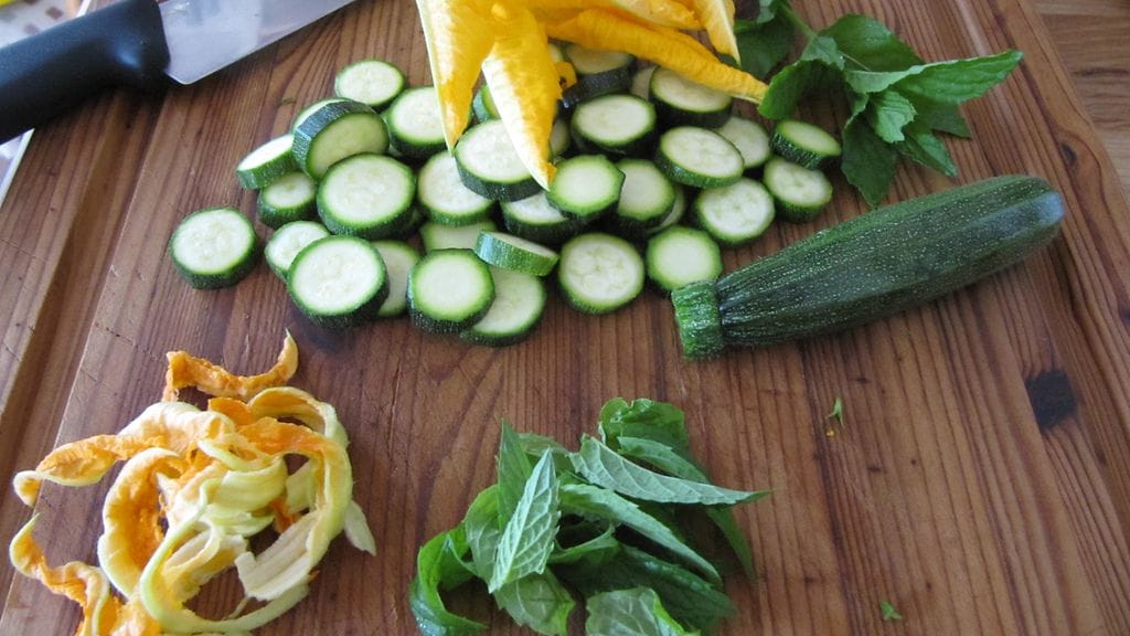 Kesäkurpitsa lienee Italian suosituin kasvis heti tomaatin jälkeen. Kasvi on ylivoimaisesti eniten satoa tuottava laji puutarhassa. Olen heittänyt joskus, että yksi kesäkurpitsa tuottaa ruokaa juuri sopivasti yhdelle ihmiselle. Sen enempää sitä ei tekisi edes mieli syödä. Kasvi putkauttaa 1-3 kukkaa päivässä ja makkarankokoisia hedelmiään muutaman viikossa. Sen kun kertoo kahdella, tietää, että meillä syödään kesäkurpitsaa.