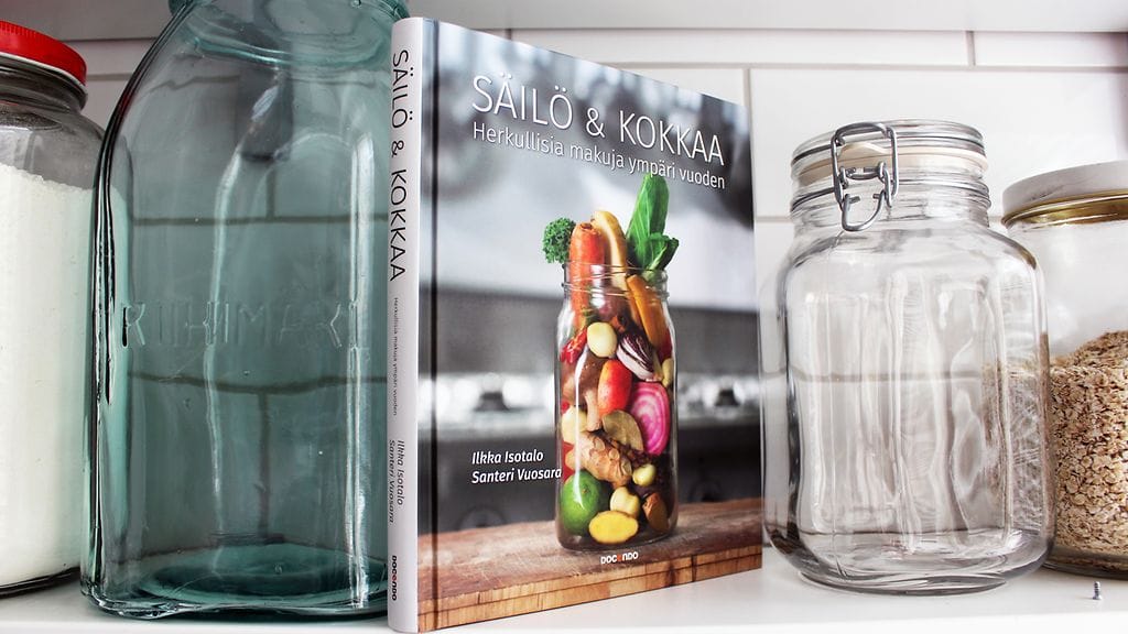 Nyt tupsahti postista sen verran mielenkiintoinen ja ajankohtainen kirja, että jäin sen pariin vahingossa pitkäksi toviksi. Säilöminen ei ole minulle kovin tuttua puuhaa. Meidän perheessä se on ollut pitkälti vaimon duunia ja hyvin on sitä pestiä hoitanutkin. Kun aiheesta puhuvat Tampereen gastronomian sekatyömies ja jokapaikanhöylä Chef Santeri alias Santeri Vuosara sekä mielestäni Tampereen parasta ruokaa tekevä, ravintola C:n ravintoloitsija ja keittiömestari Ilkka Isotalo, saadaan minutkin kiinnostumaan säilömisen ilosanomasta.