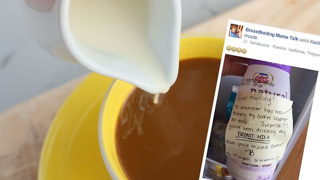 Imettävä äiti kosti hupaisalla tavalla kahvikermat varastaneelle työtoverille.