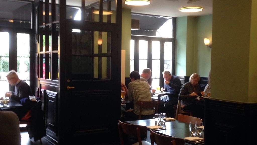 Lauantaina lounasaikaan alakerran leipärafla on reilu puolillaan. Tunnelmaa voisi kuvailla fiinin kotoisaksi. Asiakkaina ihmisiä laidasta laitaan. Eläkeläisiä, perhelounaita, kaveritreffejä ja pariskuntia. Palvelu on ystävällistä hienostuneella vivahteella. Pöytämme on tiskin vierellä ja mielenkiinto herää Aamannsin omiin keittokirjoihin sekä monenlaisiin maustettuihin snapsipulloihin. Herra Aamann on kirjoittanut aiheesta jopa opuksen. Lounasaikana suu ei ala silti napsua.