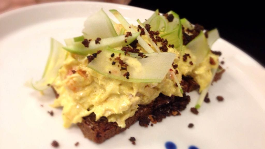 Peruna-smörre pekonilla, saksanpähkinöillä, kapriksilla, retiisillä ja ruohosipulimajoneesilla. Kanasalaatti-smörre rapealla sellerillä, omenalla ja ruissipseillä. Jersey-karjan sisäfileetä, pikkelöityä kurkkua, vihreää remouladea ja rapeaksi paistettua sipulia. Häränrinta-smörre pikkelöidyn porkkanan, piparjuuren, sipulin ja sinappisen majoneesin kera.