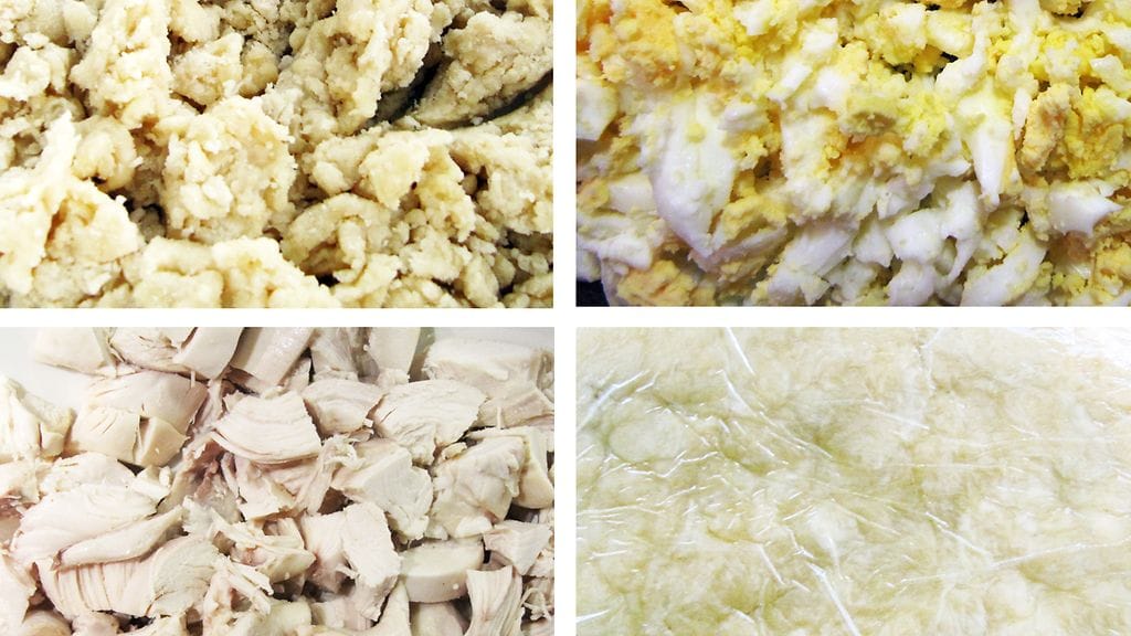 Kokonainen kana on valitettavan katoava tuote. Sen kilohinta on puolet rintafileistä ja maku maksimaalinen. 1,5-kiloinen broileri maksaa marketissa 6-8 euroa, luomu- tai lähiversiona 20-35 euroa. Tässä sen käyttäminen on varsin helppoa. Kana laitetaan kattilaan, keitetään kypsäksi ja revitään liha irti luista. Ei tarvitse veitsellä taiturointia. Keitin kanan valmiiksi edellisenä päivänä, mikä helpotti hiukan kokkaamista.