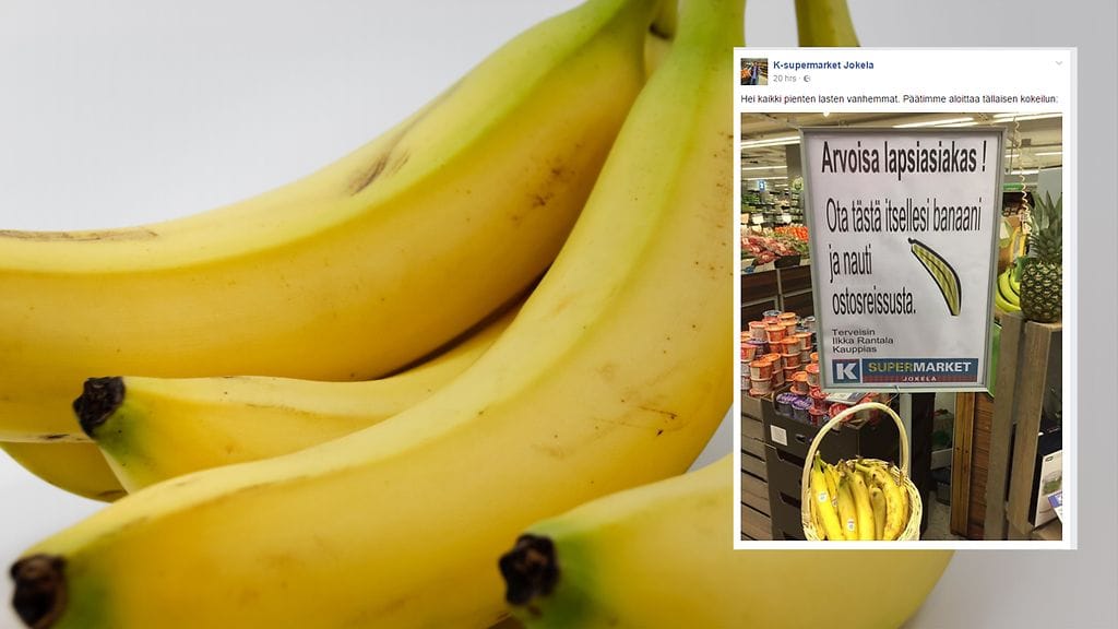 K-Supermarket Jokela on päättänyt tehdä lapsiperheille palveluksen ja tarjoaa nyt perheen pienimmille naposteltavaa ostosreissun ajaksi. Lapset saavat napata hedelmä- ja vihannesosastolta mukaansa ilmaiseksi banaanin. Näin vältetään lapsien nälkäkiukku ja saadaan heille samalla jotakin puuhasteltavaa kauppareissun ajaksi.
