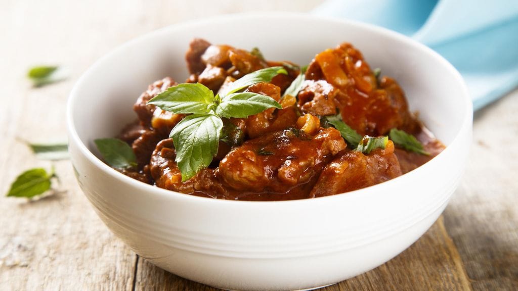Kun punaviinissä haudutetun lihapadan valmistaa nopeasti kypsyvästä ulkofileestä, ruoka on lautasellasi ennen kuin huomaatkaan.