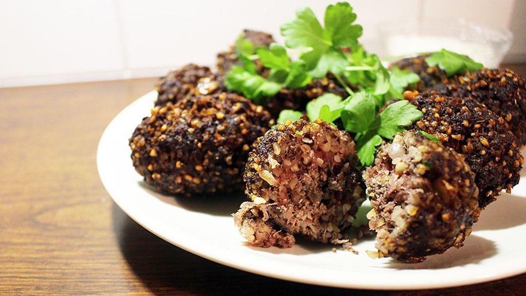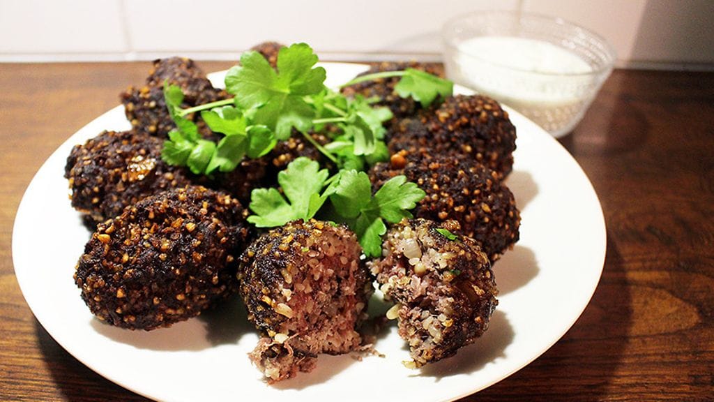 Lähi-idän perinteisistä kibbeh-pullista tekee mahottoman mehevän taikinassa oleva bulguri ja uppopaistaminen. Meze-pöytään tai pottumuusin kylkeen!