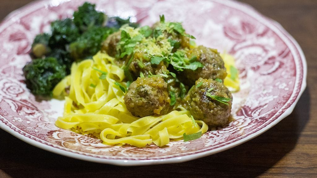 Ota pullat pannulta ja peitä foliolla. Keitä kastiketta kasaan 10 min. Soseuta soosi lopuksi (ei oo pakko). Tarjoilen kastike pullien kera ja ripottele pinnalle persiljaa ja sitruunankuorta. Voit tarjoilla pullat vaikka pastan kera.