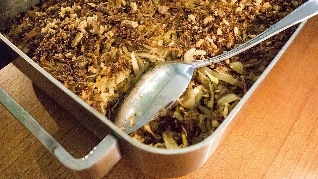 Kasviskaalilaatikko on täydellinen pakkaspäivän herkku, joka kypsyy rauhassa uunissa talvirientojen aikana.