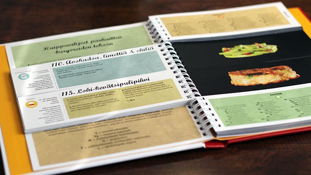 Kirja on toteutettu ovelasti niin, että hampurilaisen voi koota mieleisestä sämpylästä, päällysteestä, pihvistä ja kastikkeesta ja halutun kombon resepti on esillä yhdellä aukeamalla. Kuva selittää enemmän kuin pitkä selitys.