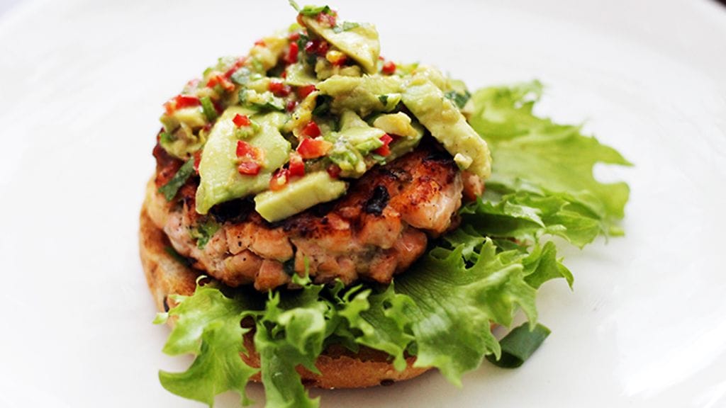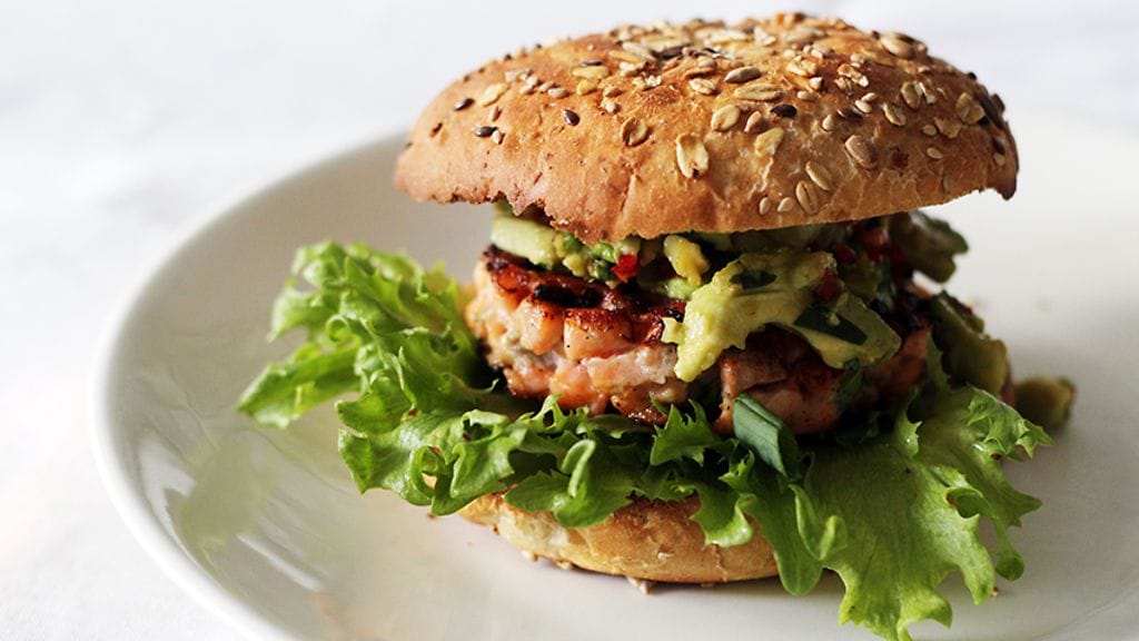 Arki huusi nopeaa ja kevyehköä ruokaa ja valitsin kirjasta pihviksi lohi-kevätsipulipihvin ja avokadoa, limettiä ja chiliä höysteeksi. Sämpylän ostin kaupasta eikä mehevä lopputulos kaivannut kastiketta. Tuloksena paras kalaburgeri, jonka olen syönyt ja itsetehdyllä sämpylällä olisi ollut vielä parempi. Sitruksinen majoneesikin olisi sopinut.
