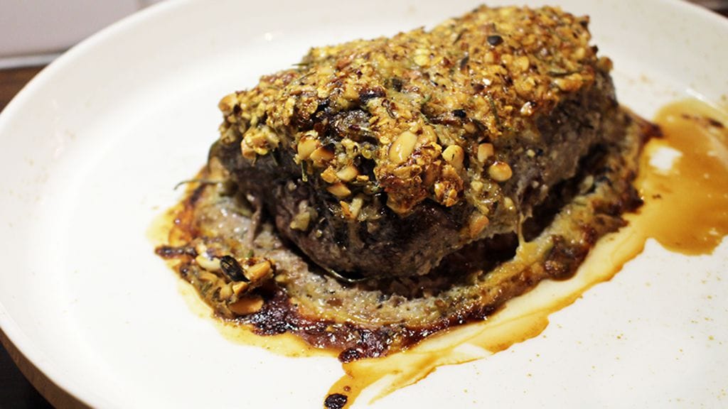 Tässä sisukka marinoidaan ja paahdetaan uunissa maapähkinä-rosmariini-chilikuorrutteessa. Pinnalle syntyy miehisesti potkaiseva kuori ja sisälle mehevän murea liha.