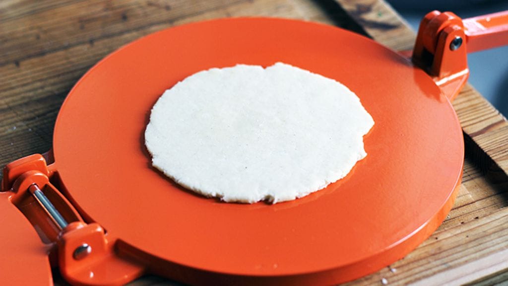 Sain vihdoin hankittua itselleni tortillaprässin. Kiitos siitä Culinaria - Keittiöelämää -liikkeen nopealle toiminnalle. Tiedustelin, onko sellaista myynnissä ja kauppias heitti tilauksen viime hetkellä juuri lähtevään tukkukuormaan. Olen saanut kommentteja surkean näköisistä tortilloistani ja prässillä homma korjaantui yhdellä painalluksella. Asiaa edesauttoi myös se, että lisäsin lättytaikinaan masa harina -maissijauhojen lisäksi vehnäjauhoja. Uskaltaisin sanoa koostumusta täydelliseksi.