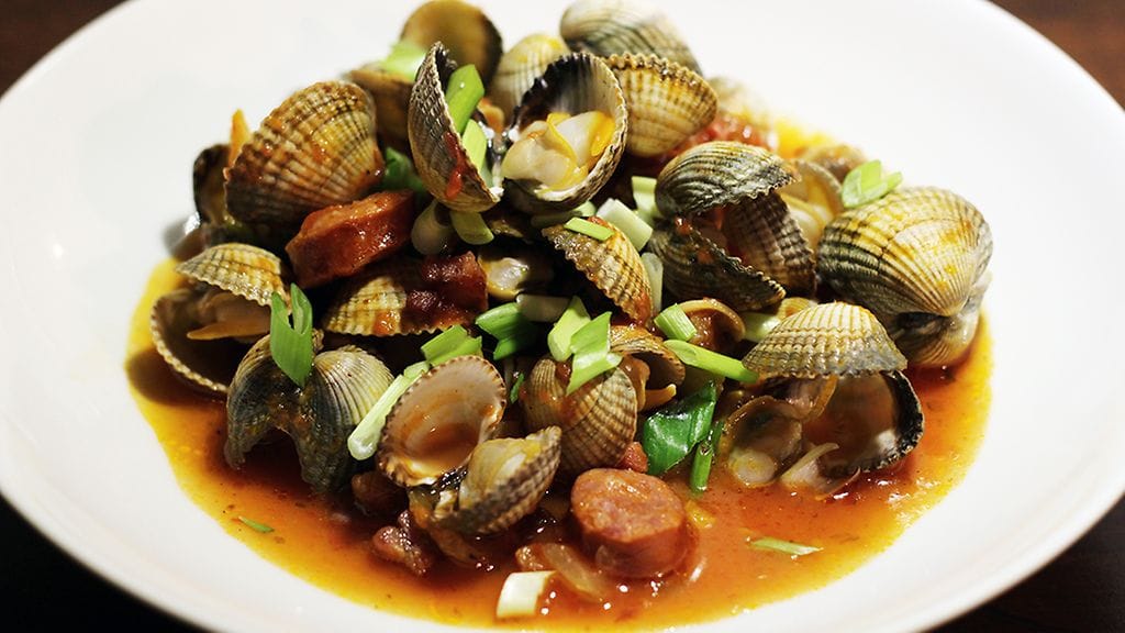 Joskus tulee tehtyä niin hyvää safkaa, että oikein ihmettelee itsekin. Toisaalta, kun raaka-aineet ovat viimeisen päälle ja joku tolkku niiden yhdistämisessä, pyhiä liittoja syntyy väistämättä. Keräsin toki vinkkejä pitkin nettiä ja ymppäsin jujuja mukaan. Jenkkityylinen chowder kun ei ole itselleni erityisen tuttu, muutaman kerran olen sitä syönyt raflassa ja kotona. Tällä kertaa annos lähti pussukasta sydänsimpukoita, joiden kutsua en voinut kalatiskillä vastustaa. Olin syönyt edellisenä päivänä pastaa, joten suosikkiannostani, pasta alla vongolea, en halunnut tehdä. Siispä nopea googlaus kaupassa ja kännykän ruutu alkoi täyttyä erilaisista chowdereista, paksuudeltaan keiton ja padan välimallista. Kun silmiin iski vielä Manhattan Clam Chowder ja siinä mukanaoleva chorizo, perjantai-illallinen oli tekemistä vaille valmis. Portugalilaisten siirtolaisten perinteistä alkunsa saanut tomaattinen chowder-versio on kirjattu ensimmäisenä Victor Hirtzlerin keittokirjaan Hotel St. Francis Cookbook vuodelta 1919.